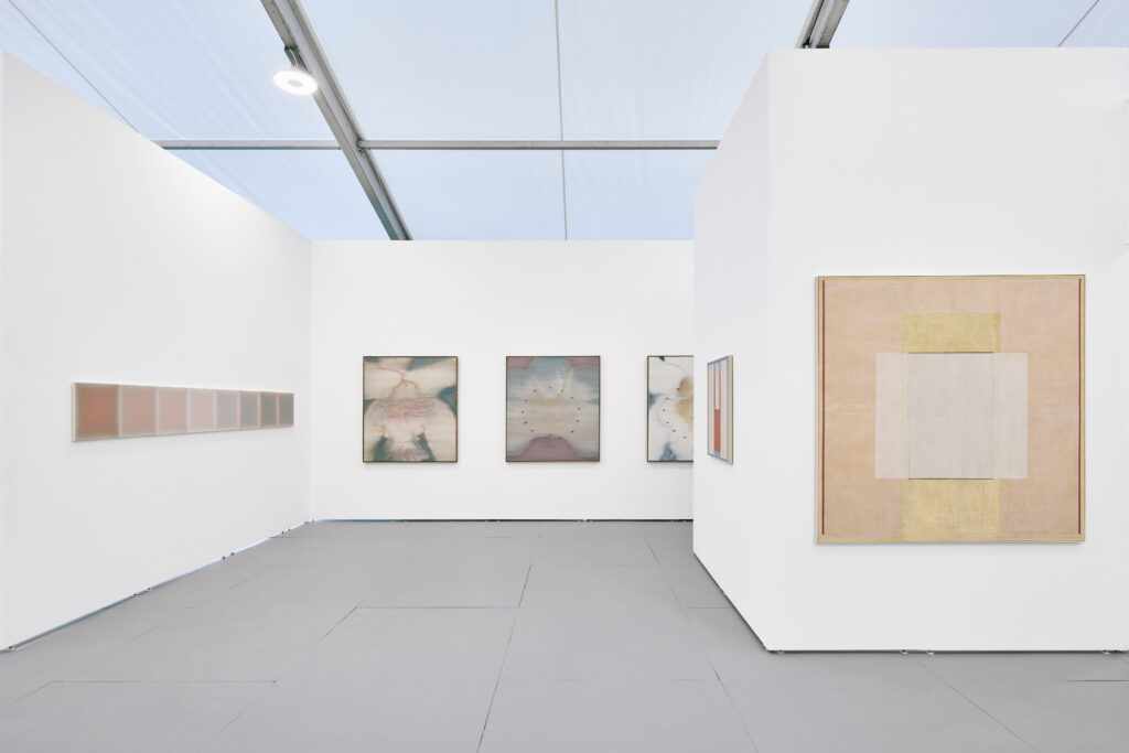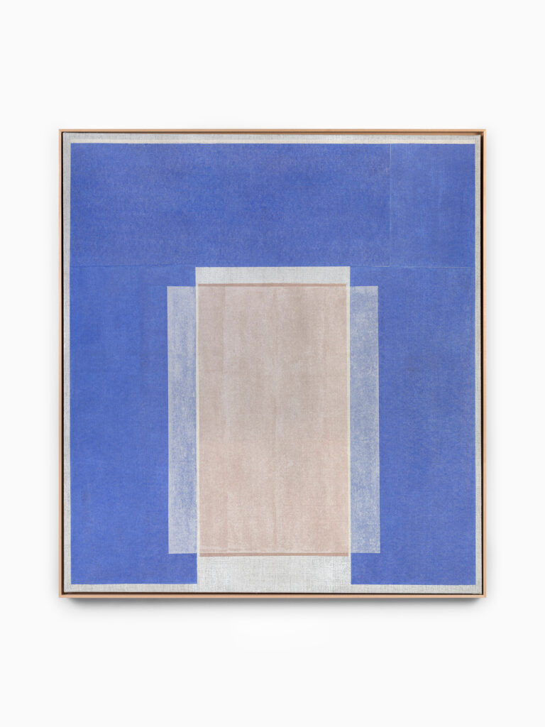 These redundant massive forms focus attention on the surrounding wall works that line up side by side, their serene tones quivering in impressive silence. Their power stemming from their subtle interplay between depth and flatness and their gently antagonistic use of colour. Even with that delicate intensity the works in the series don’t pursue an emotional rawness but reach instead for something elemental and open. Without offering any form of resolution they instead engage a sensory dimension, articulating unknown sentiments that reveal the contradictory threads of the human condition and the emotional resilience required to be an artist.
